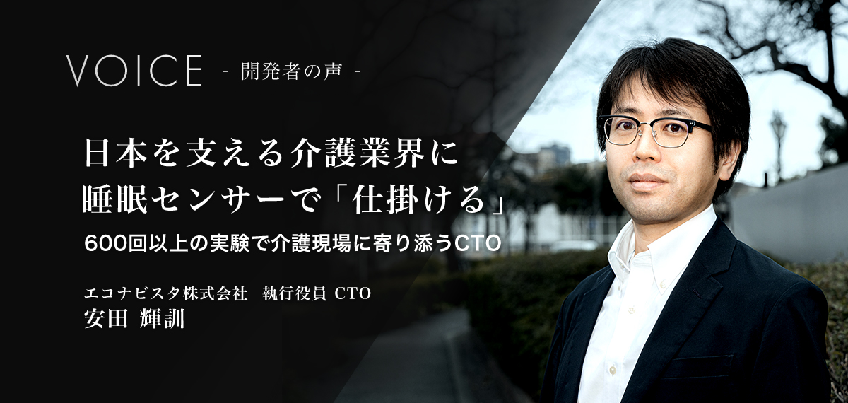 エコナビスタから業界初デュアルAI睡眠センサー「ライフリズムナビ新型 SleepSensor」が発表された。まもなく当製品が搭載された介護施設向け高齢者見守りシステム「ライフリズムナビ®+Dr.」および在宅向け「ライフリズムナビ®+HOME」が世に届けられていく。当ページでは–開発者の声–として、CTOの安田にインタビューした。