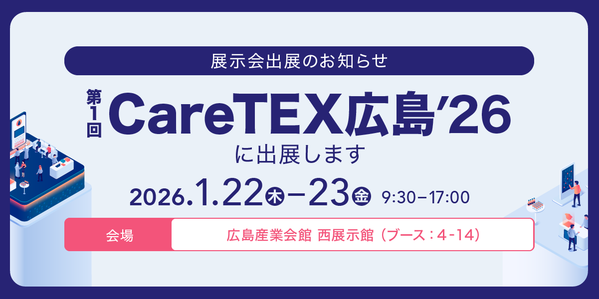 1月22日(木)~23日(金)の2日間、広島産業会館で行われる「第1回 CareTEX広島’26」にグローリー株式会社様と共同で出展いたします。