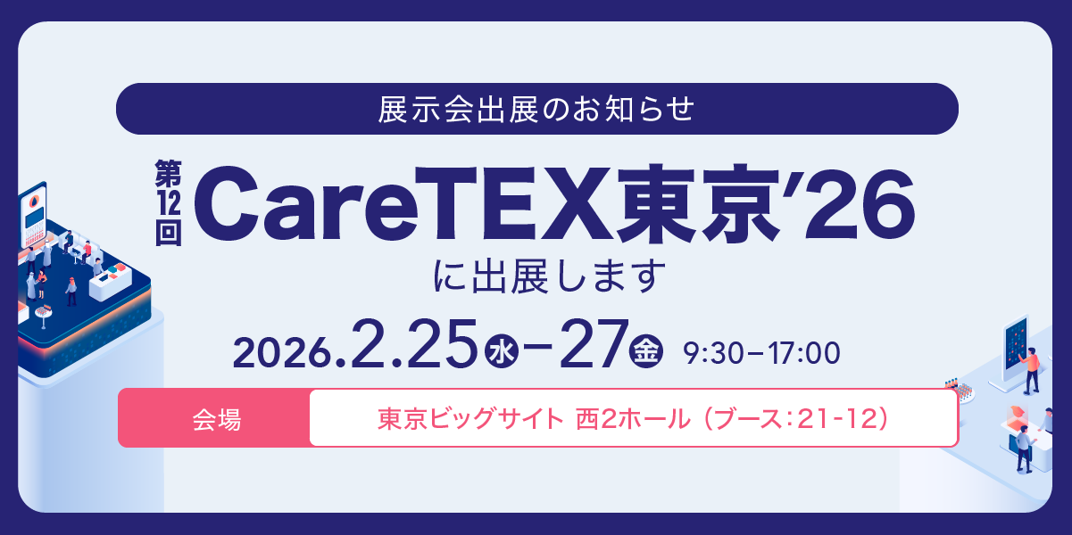2月25日(水)~27日(金)の3日間、東京ビッグサイトで行われる「第12回 CareTEX東京’26」にグローリー株式会社様と共同で出展いたします。