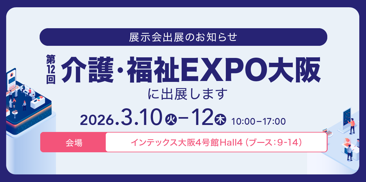3月10日(火)~12日(木)の3日間、インテックス大阪で行われる「第12回介護・福祉EXPO大阪」にグローリー株式会社様と共同出展いたします。
